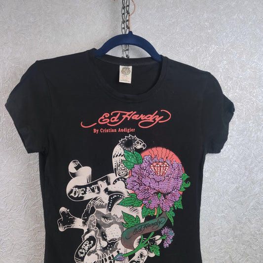 Vintage Ed Hardy Damen Graphic T-Shirt Large